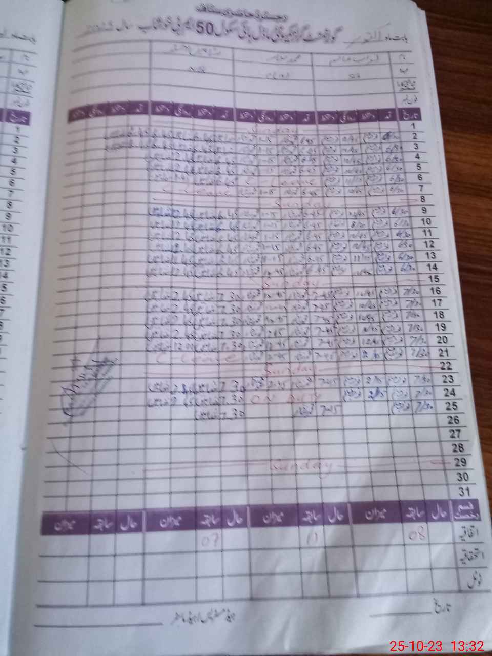 | CNIC | Full Name | Designation | R/C | Absence During Last Calender Month |
