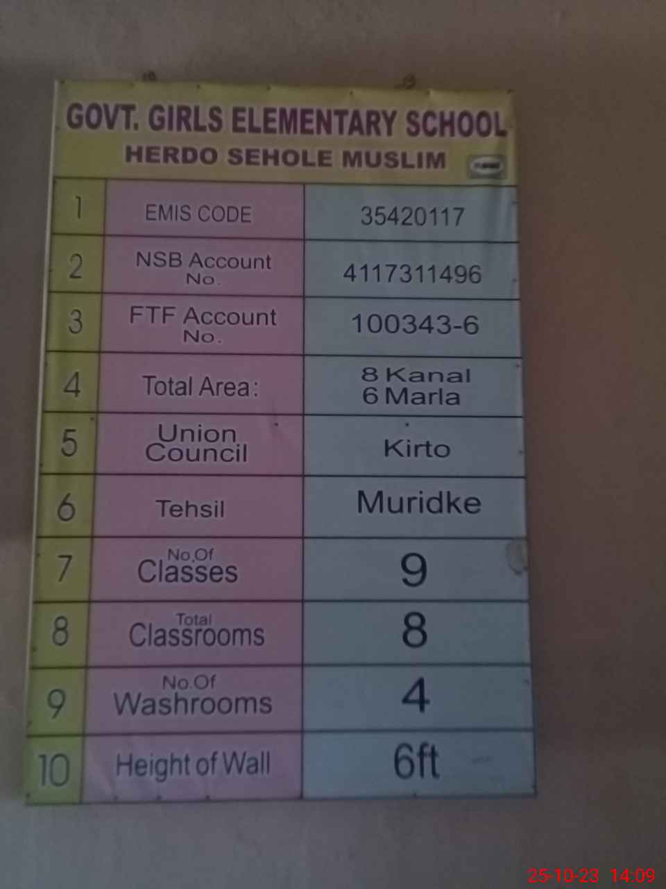| District: SHEIKHUPURA | Tehsil: MURIDKE | Markaz: KALA KHATAI-FEMALE | Level: Middle | |