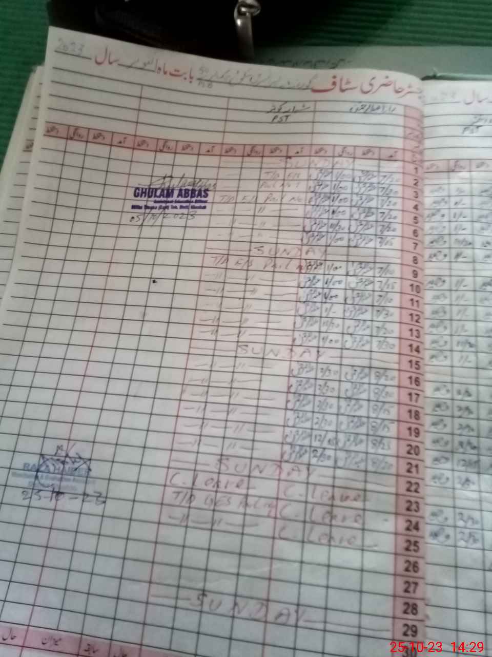| CNIC | Full Name | Designation | R/C | Absence During Last Calender Month |