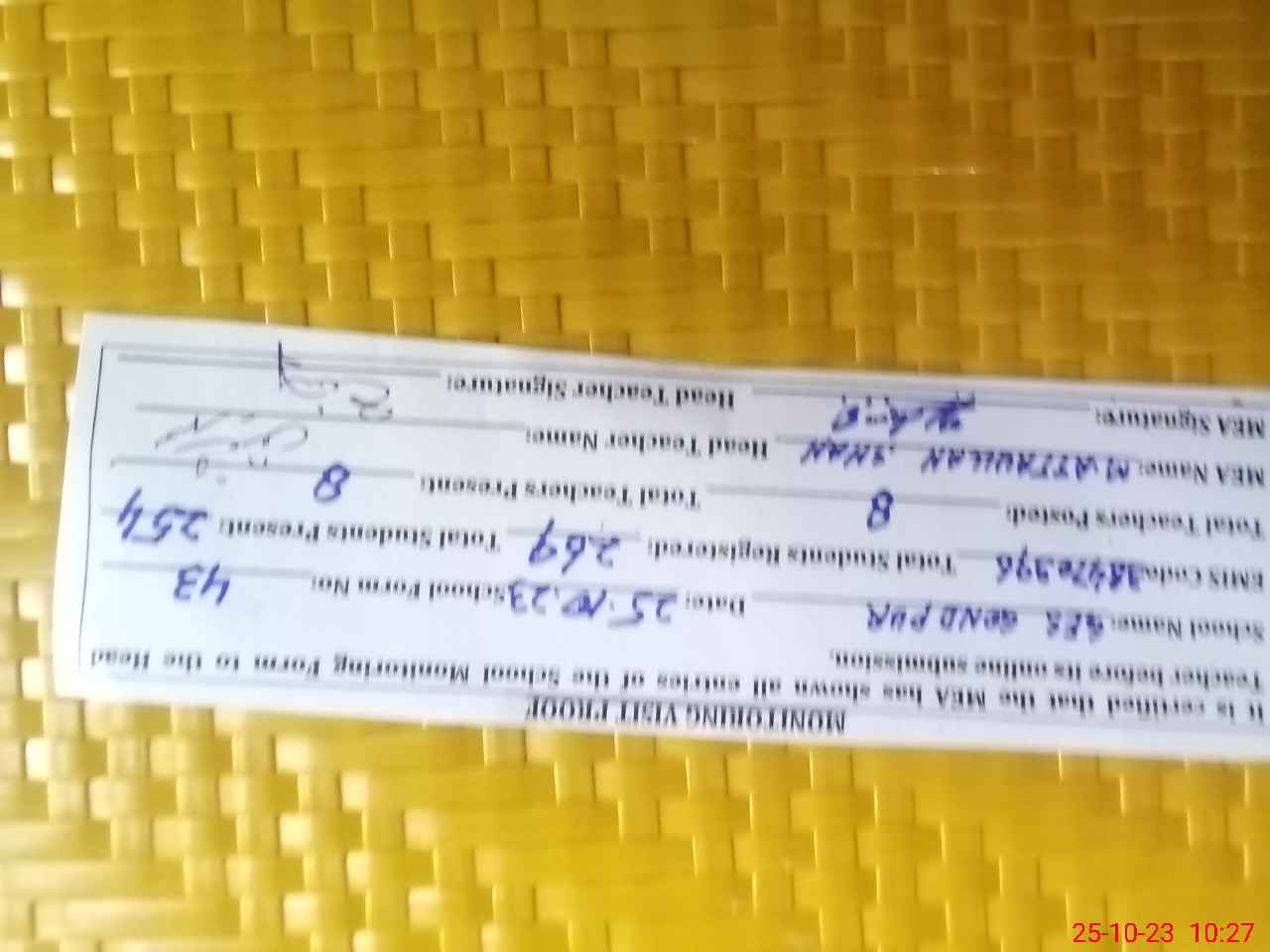 | Monitoring Date: 25-10-2023 | Start Time: 25-10-2023 09:59 AM | End Time: 25-10-2023 10:47 AM | Name of MEA: AT**** UL**** SH**** (R**** | |