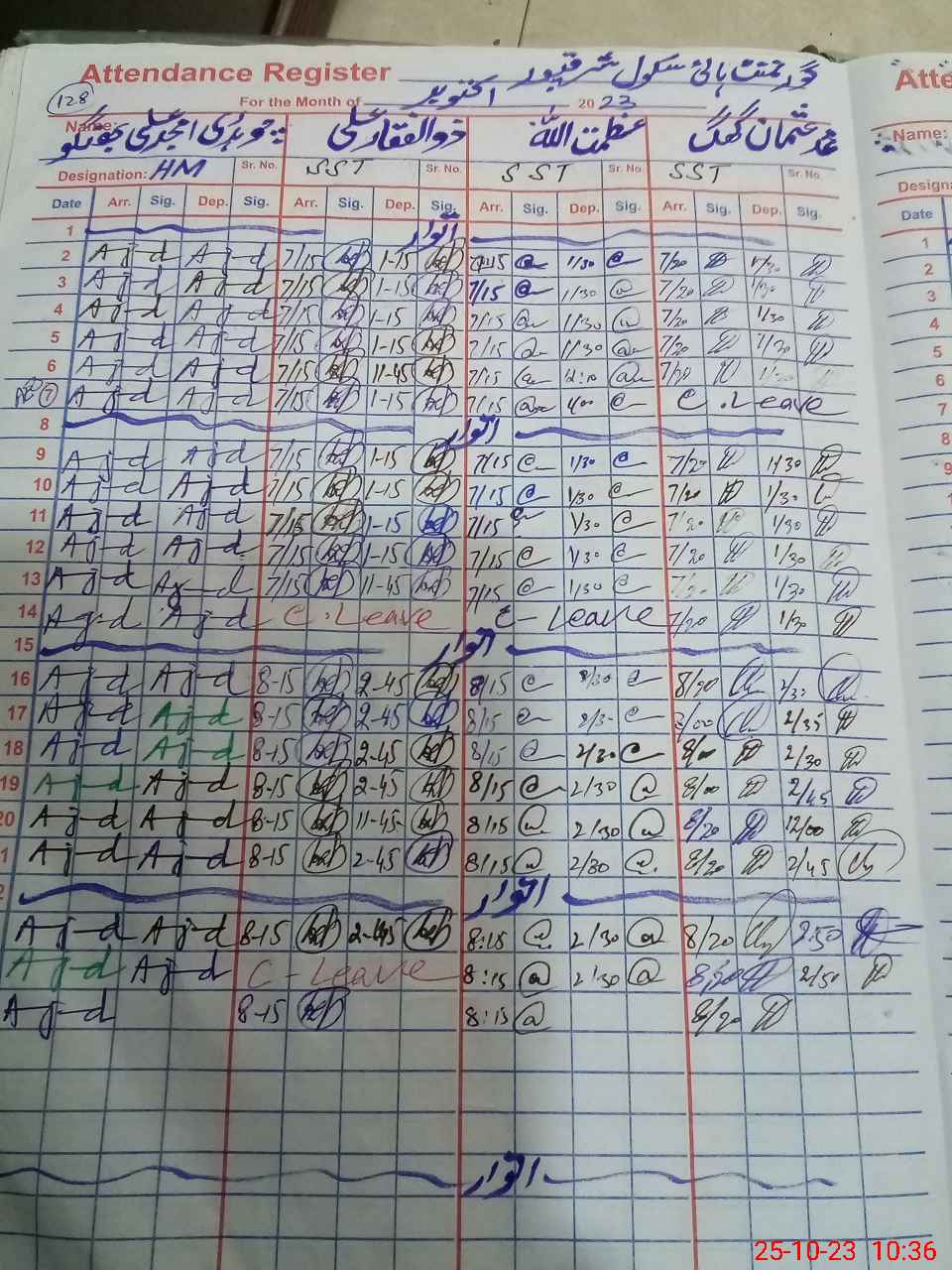 | Leave | Duty | Absent | Maternity | Medical | Ex- Pak |