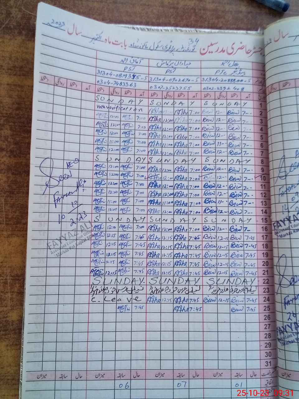 | CNIC | Full Name | Designation | R/C | Absence During Last Calender Month |