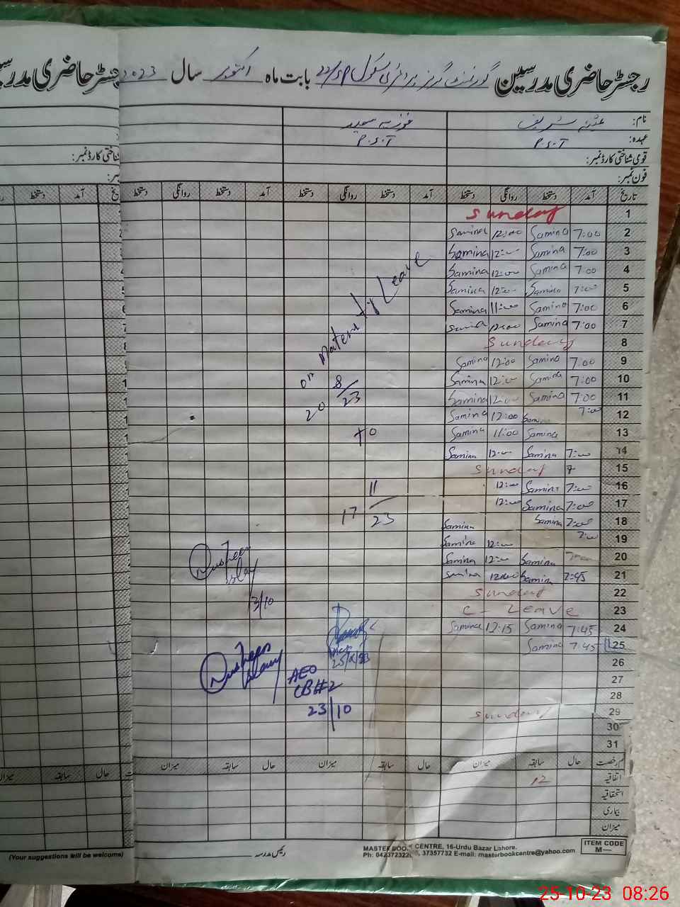 | CNIC | Full Name | Designation | R/C | Absence During Last Calender Month |