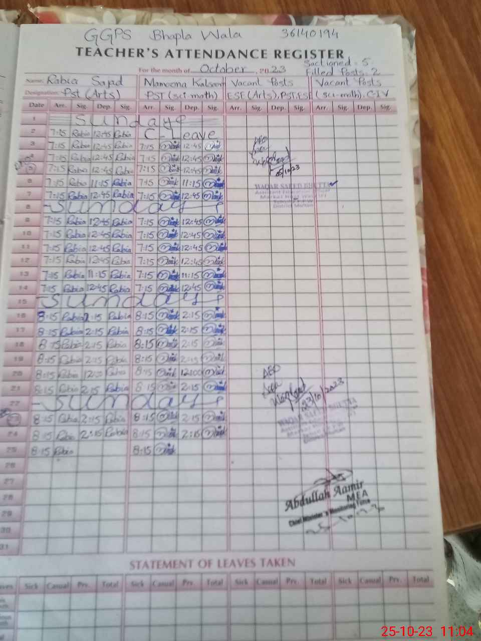 | EMIS Code: 36140194 | Name of School: GGPS BHAPLA WALA | |||