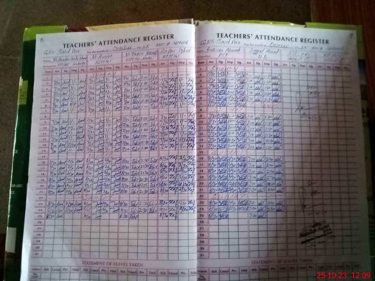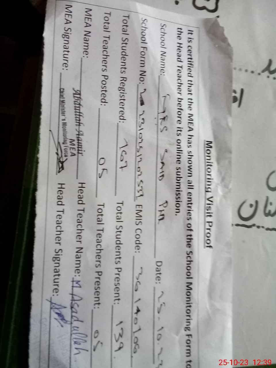| Attendance Register | Head Teacher | MEA with School | Visit Proof |