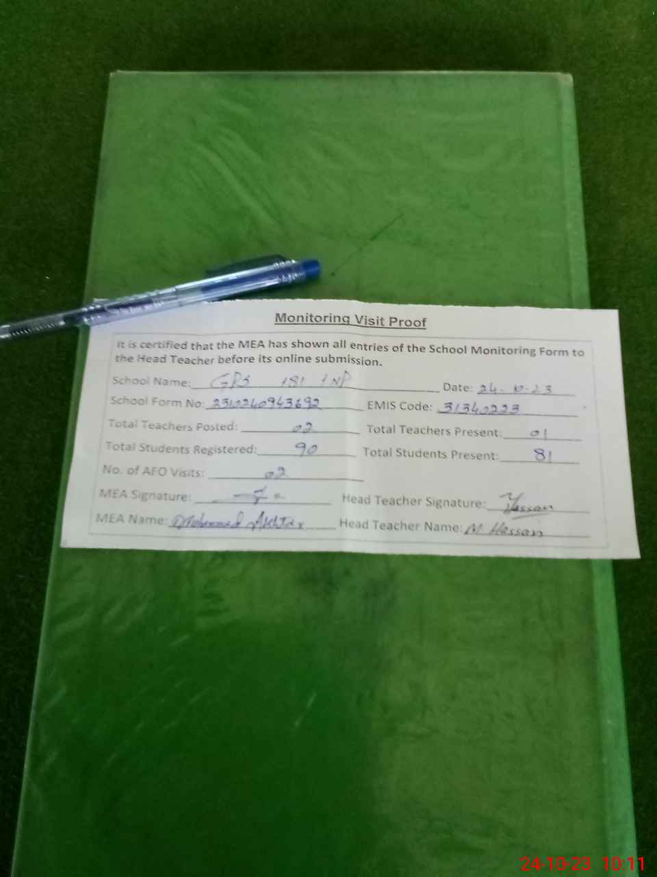 | EMIS Code: 31340223 | Name of School: GPS CHAK NO 181 NP | |||