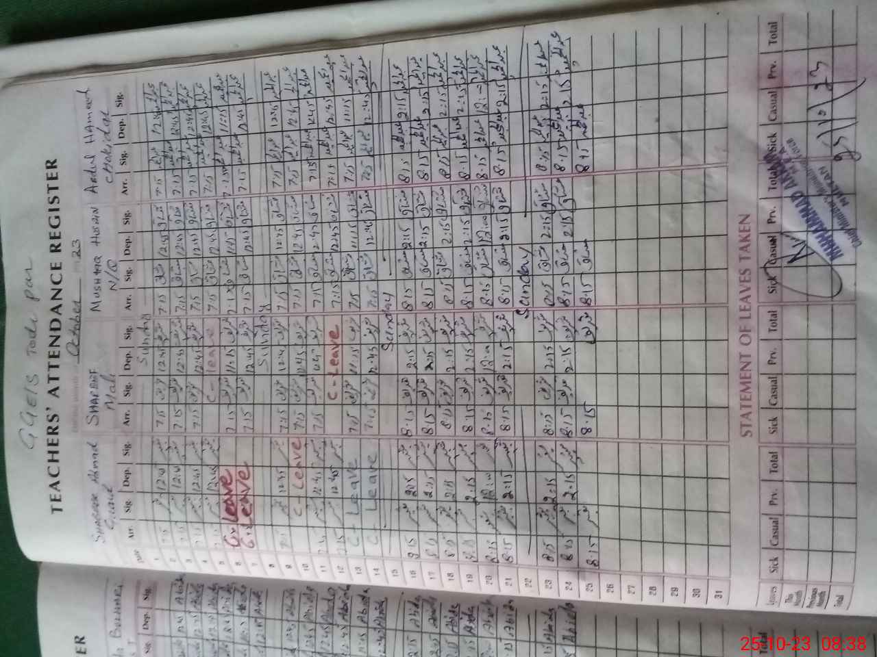 | Leave | Duty | Absent | Maternity | Medical | Ex- Pak |