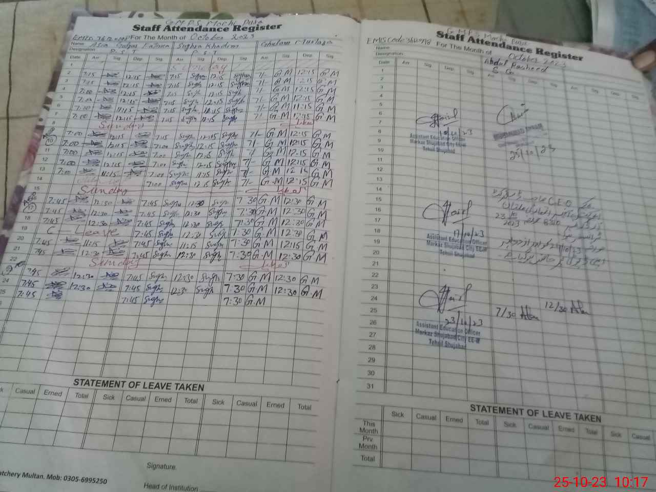 | Name: AB**** RA**** Designation: (School Headmaster's/Headmistress's) HEADMASTER Phone/Cell Number: 03**** |