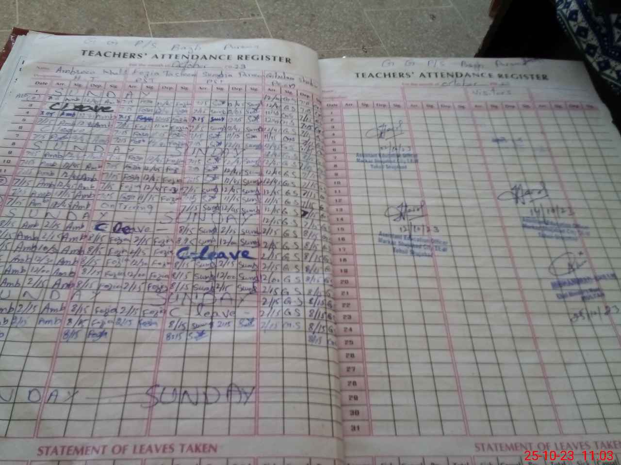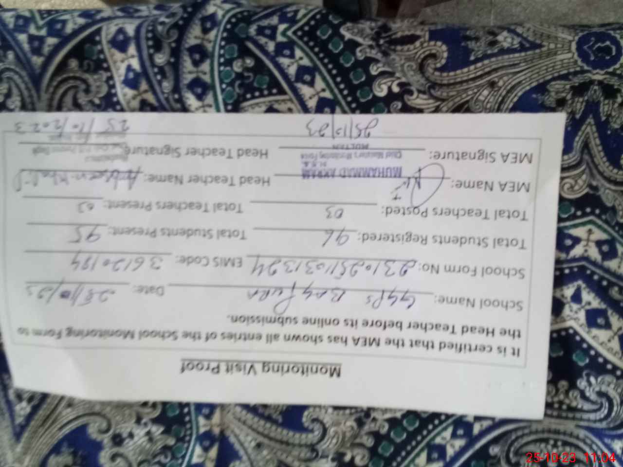 | Attendance Register | Head Teacher | MEA with School | Visit Proof |