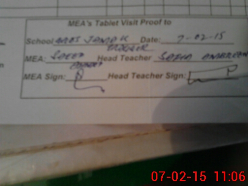 | Attendance Register | Head Teacher | MEA with School | Visit Proof |