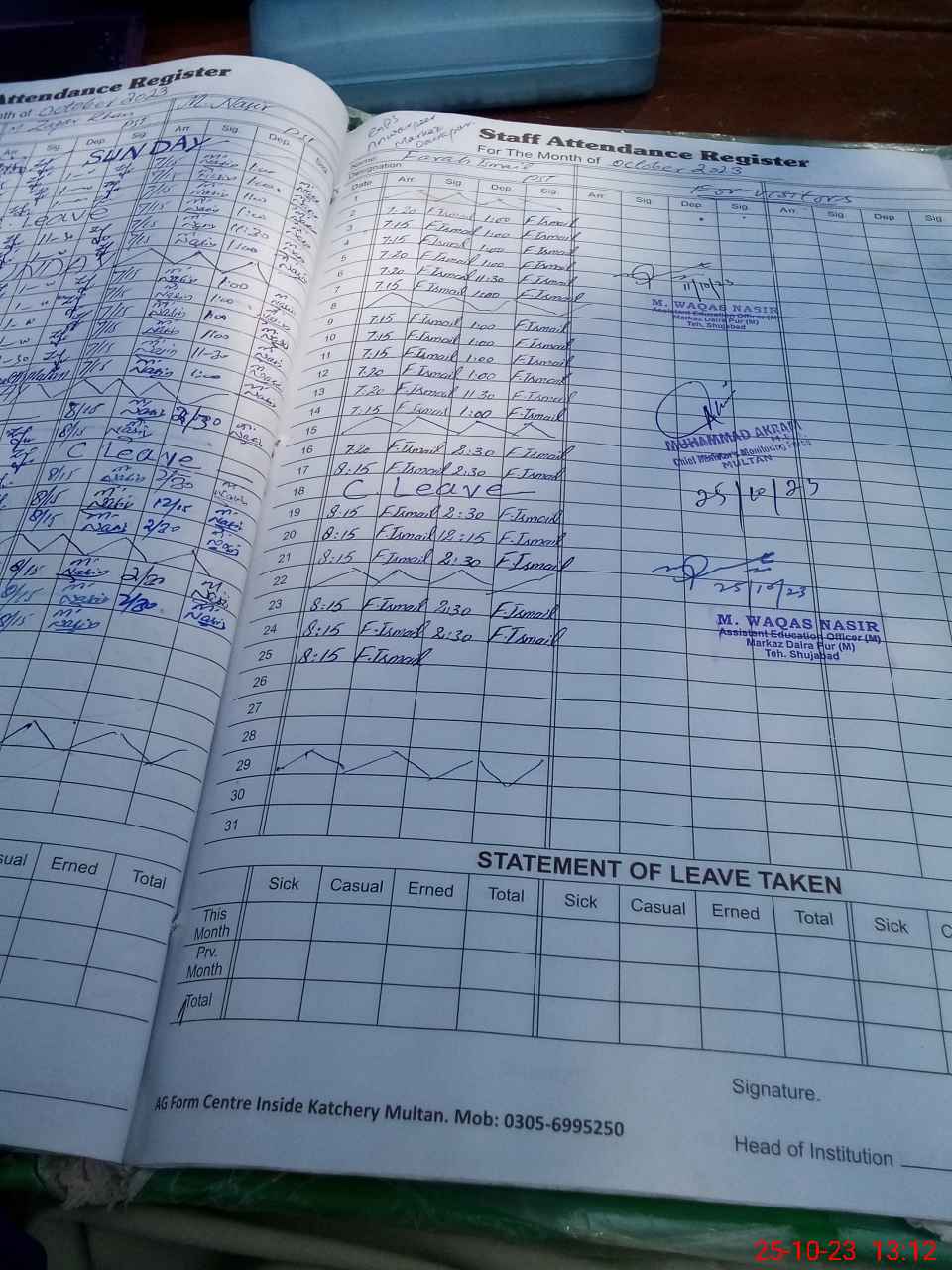 | Name: EH**** AH**** Designation: (School Headmaster's/Headmistress's) HEADMASTER Phone/Cell Number: 03**** |