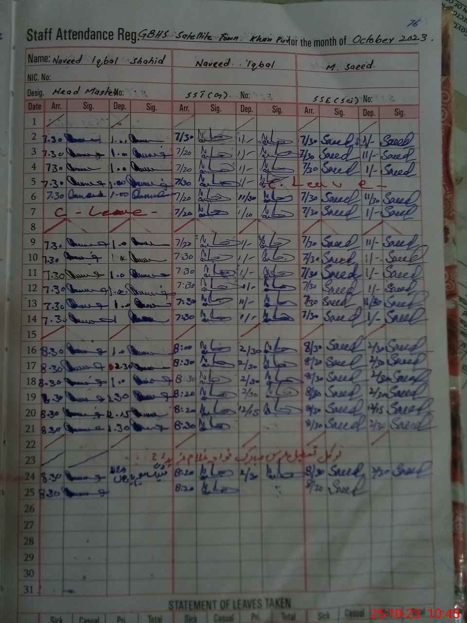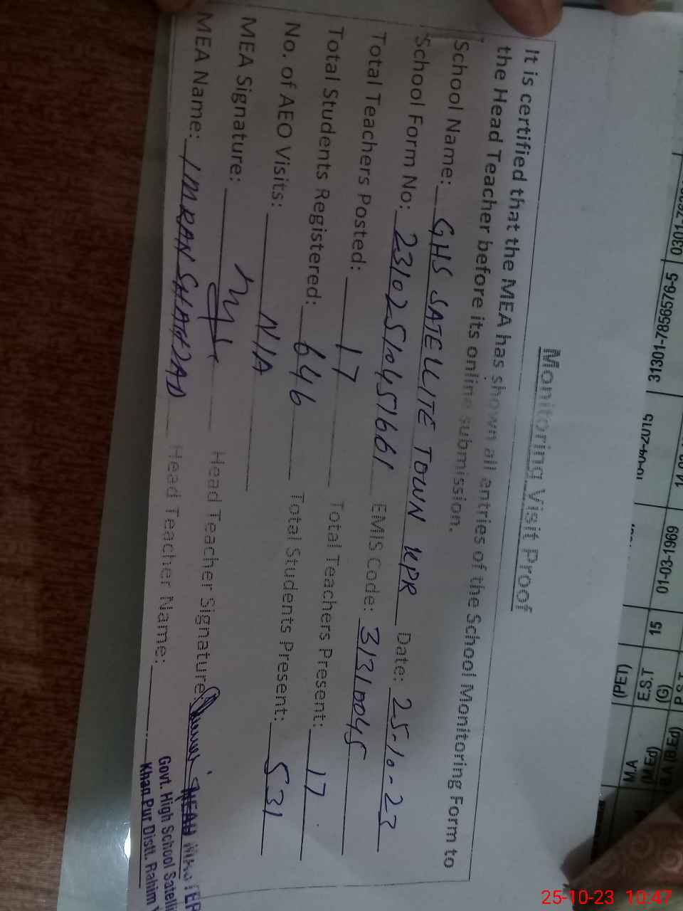 | EMIS Code: 31310045 | Name of School: GHS SATELLITE TOWN KHANPUR | |||