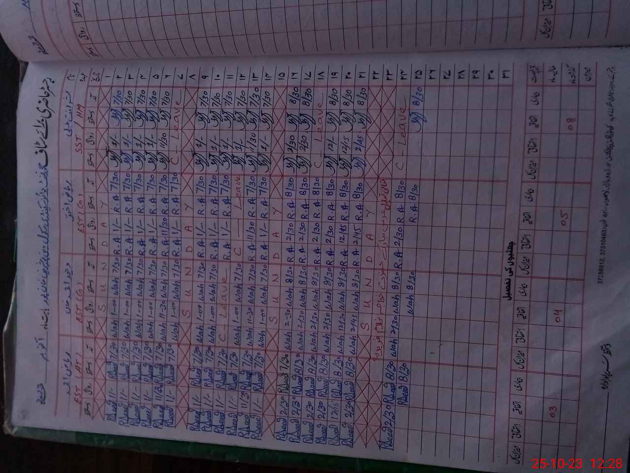 | Leave | Duty | Absent | Maternity | Medical | Ex- Pak |