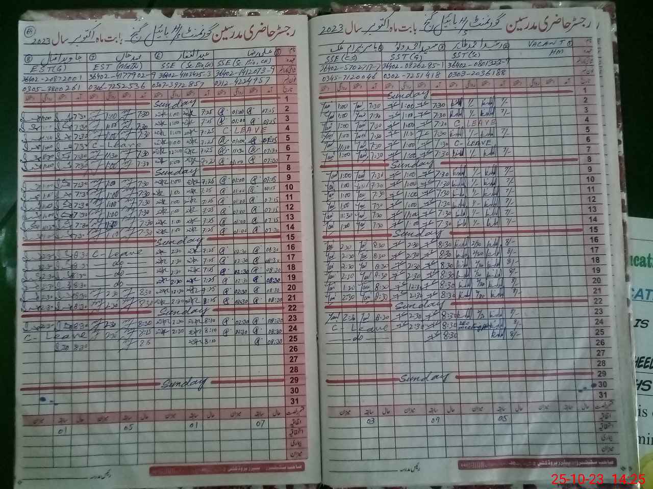| CNIC | Full Name | Designation | R/C | Absence During Last Calender Month |