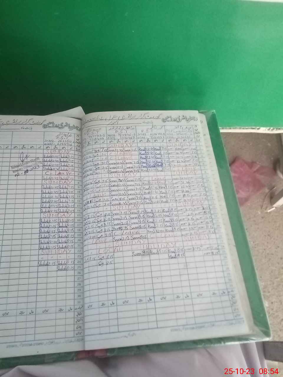 | CNIC | Full Name | Designation | R/C | Absence During Last Calender Month |