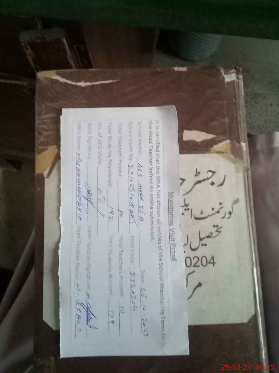 | EMIS Code: 31320204 | Name of School: GES CHAK 25/A | |||