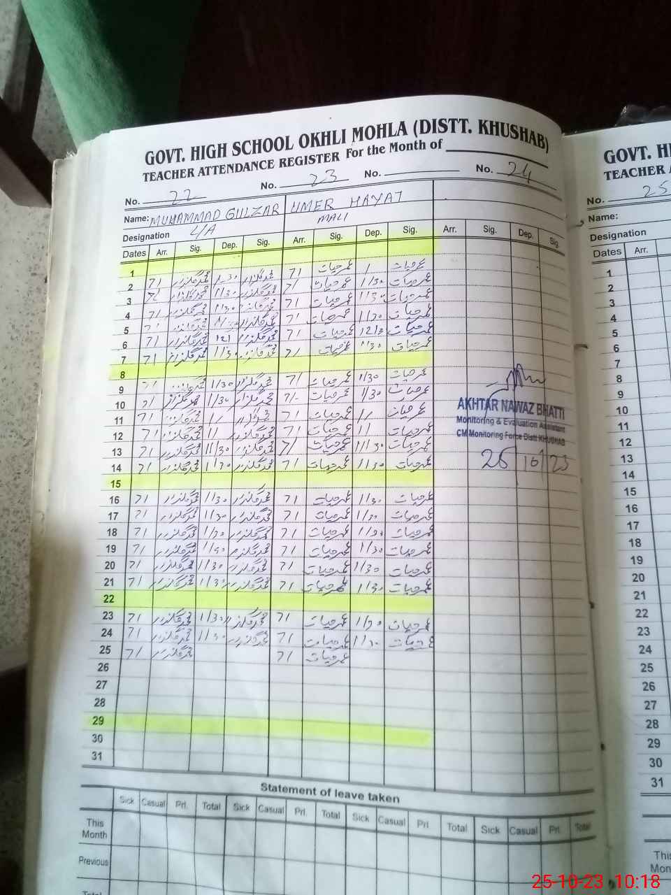 | Monitoring Date: 25-10-2023 | Start Time: 25-10-2023 09:00 AM | End Time: 25-10-2023 10:20 AM | Name of MEA: AK**** NA**** (R**** | |