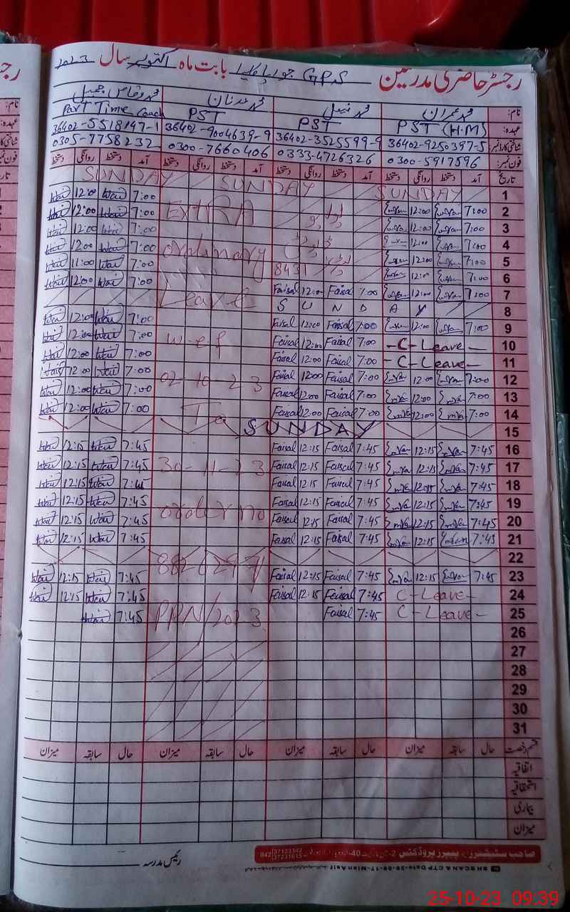 | Name: MU**** Fa**** Designation: (School Headmaster's/Headmistress's) PST Phone/Cell Number: 03**** |