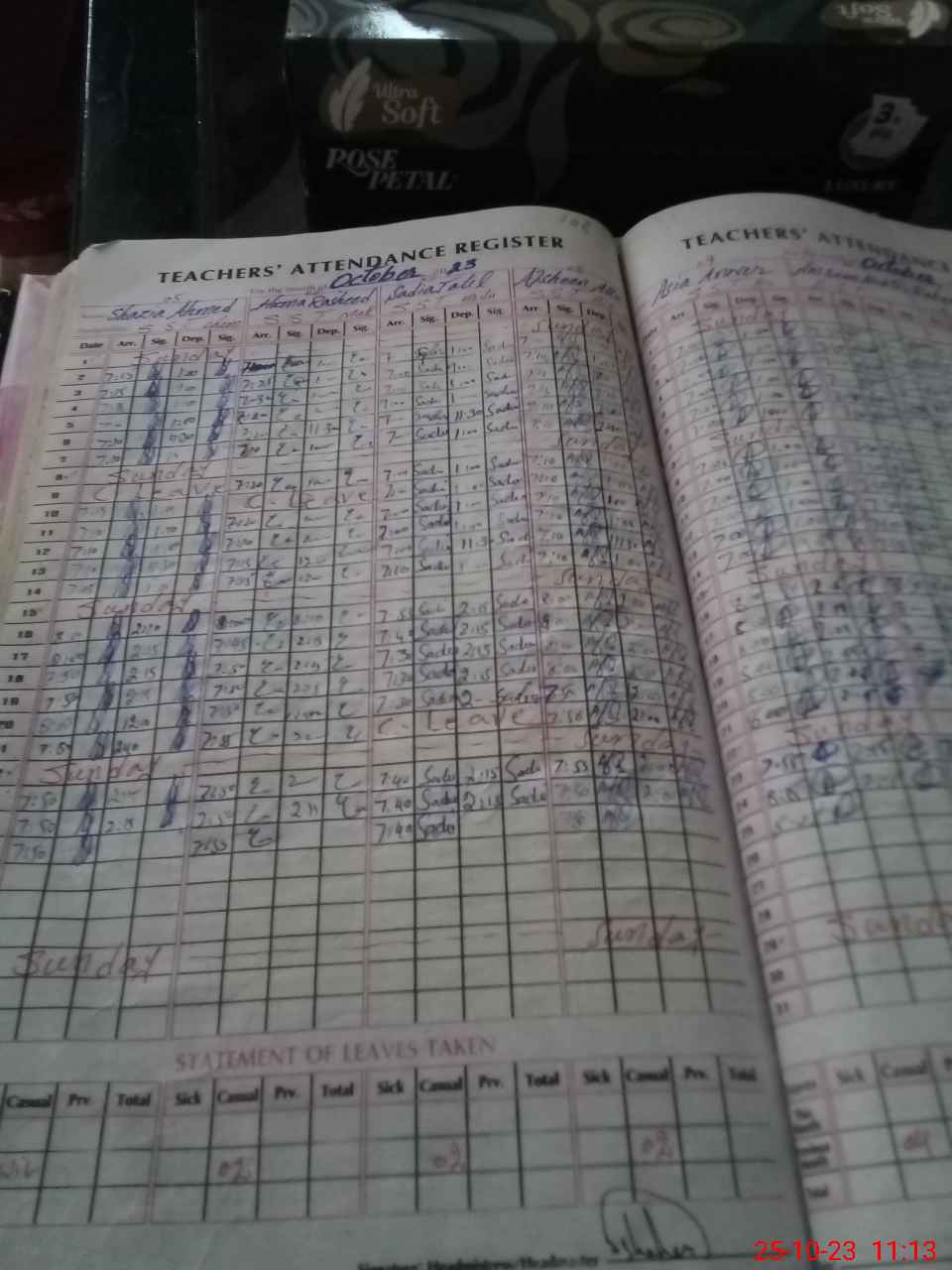 | Leave | Duty | Absent | Maternity | Medical | Ex- Pak |