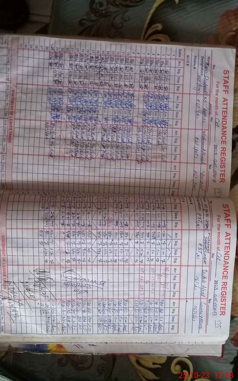 | CNIC | Full Name | Designation | R/C | Absence During Last Calender Month |