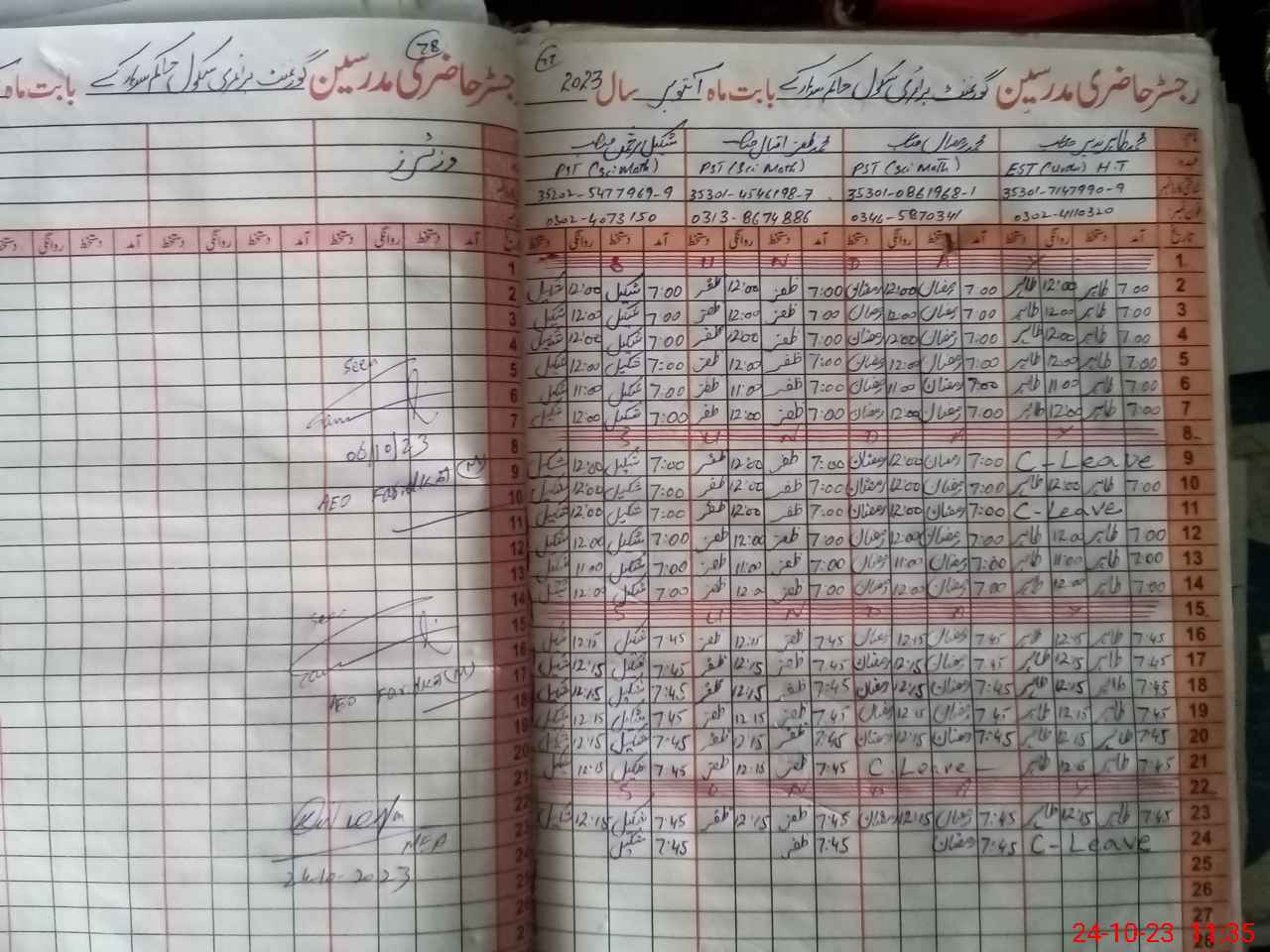 | CNIC | Full Name | Designation | R/C | Absence During Last Calender Month |