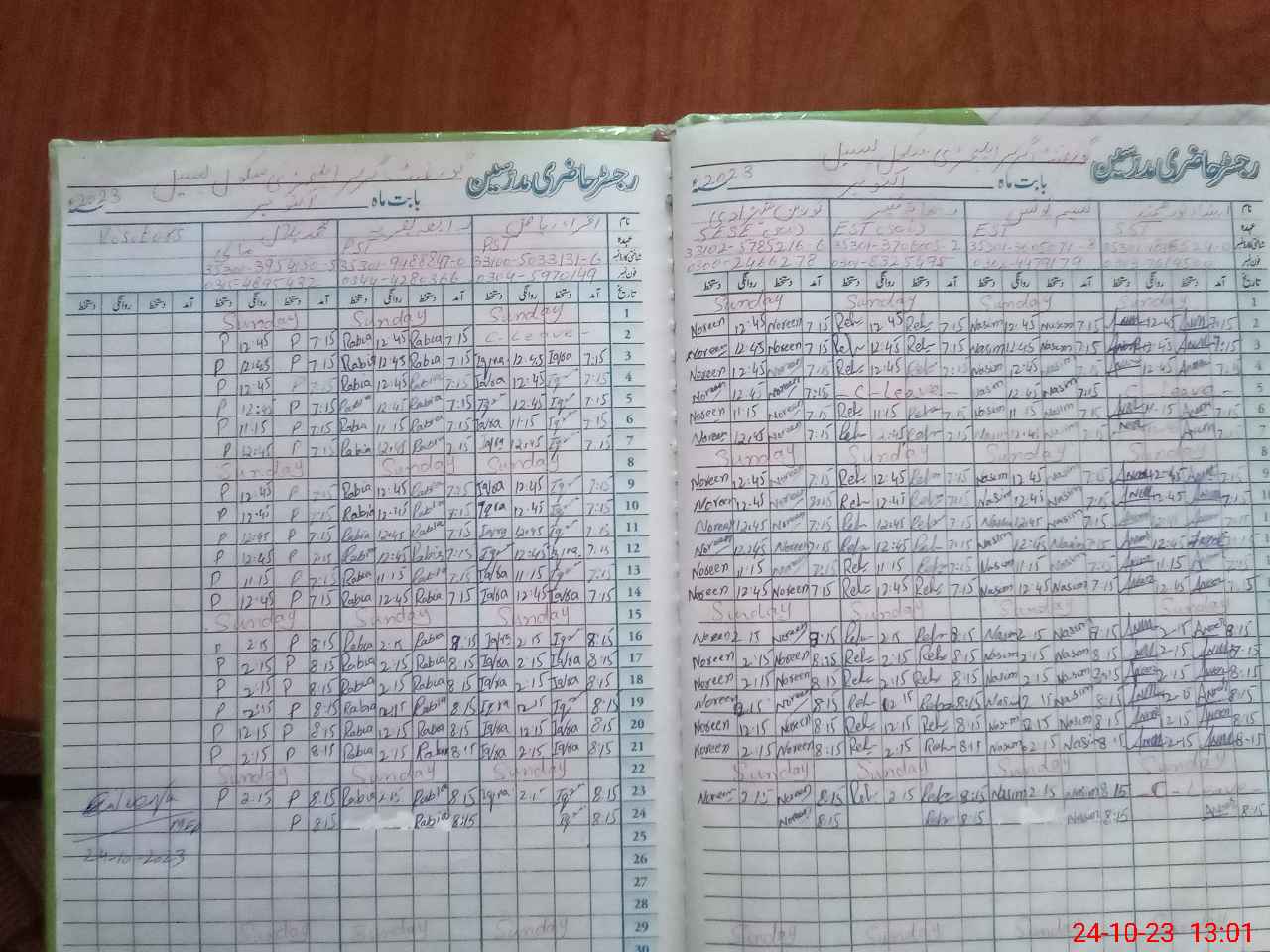 | CNIC | Full Name | Designation | R/C | Absence During Last Calender Month |