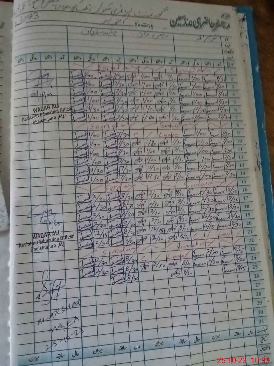 | CNIC | Full Name | Designation | R/C | Absence During Last Calender Month |