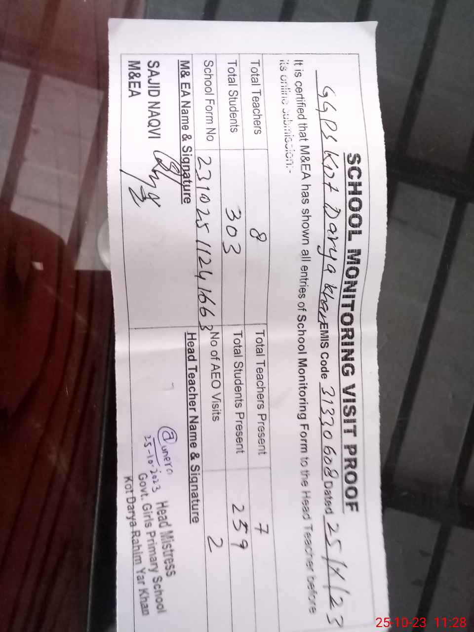 | EMIS Code: 31330608 | Name of School: GGPS KOT DARIA | |||