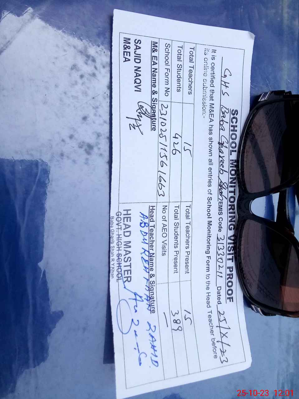 | EMIS Code: 31330211 | Name of School: GHS BABA GHARIB SHAH | |||