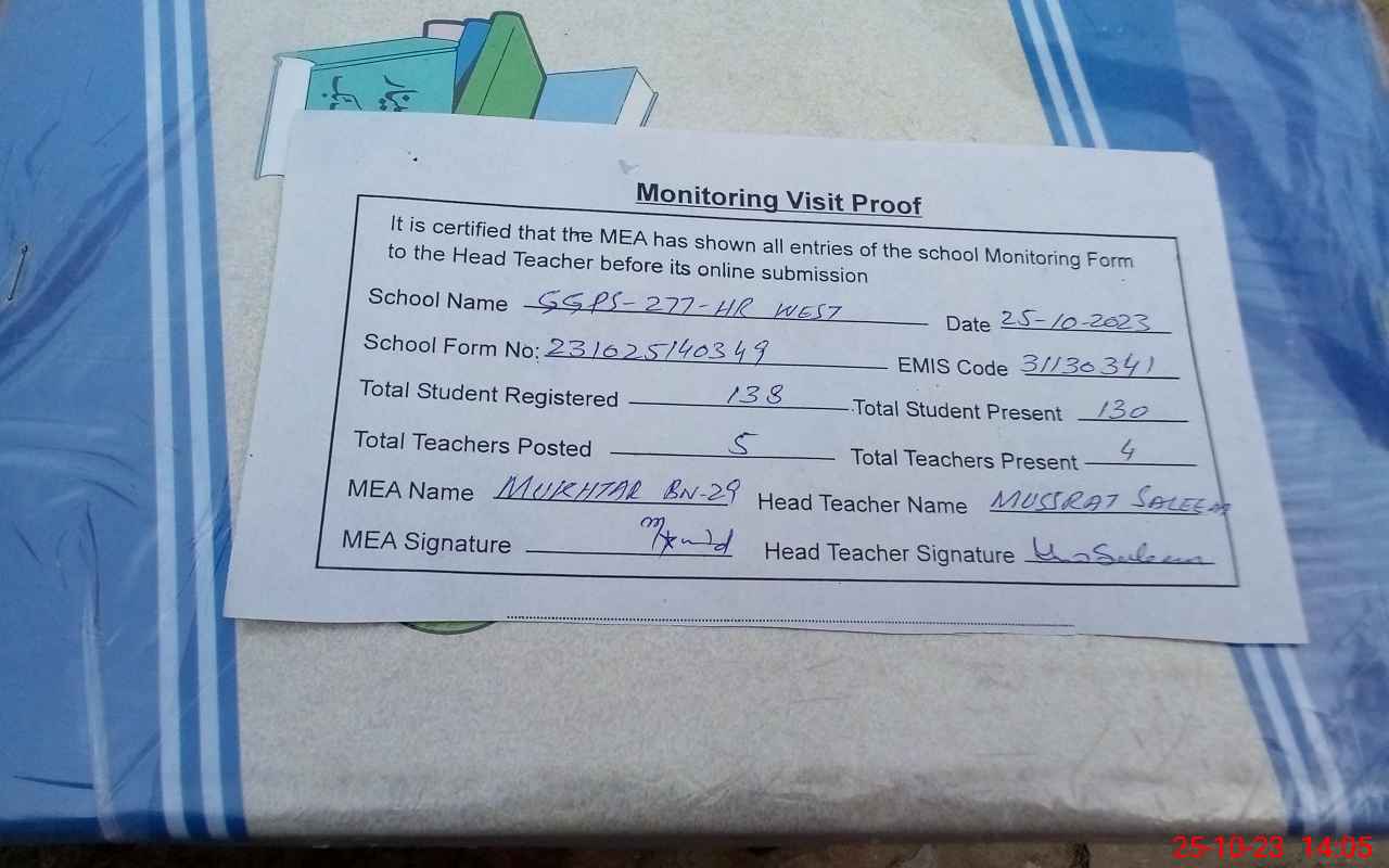 | EMIS Code: 31130341 | Name of School: GMPS CHAK NO 277 HR W | |||