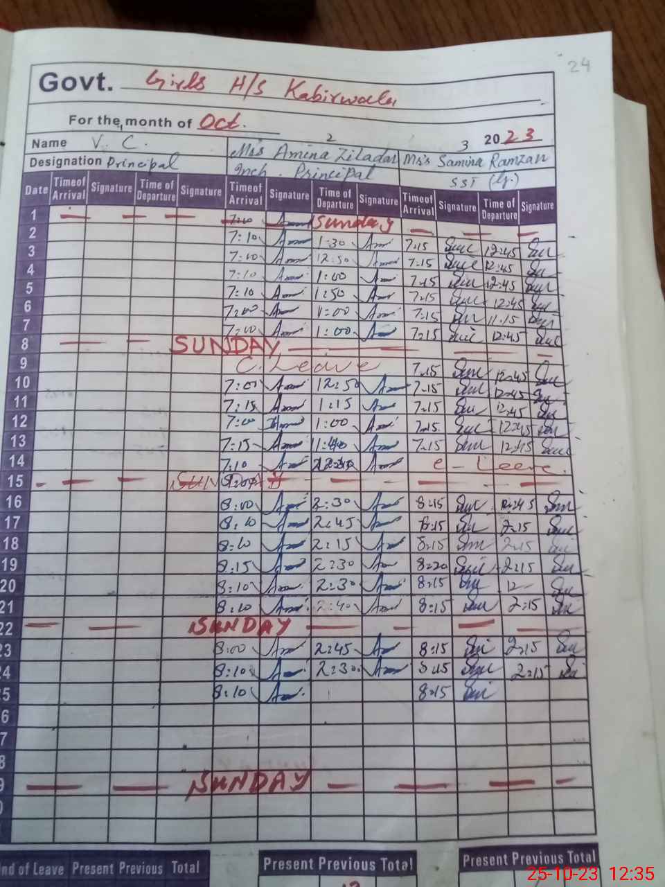 | CNIC | Full Name | Designation | R/C | Absence during last cal. month |