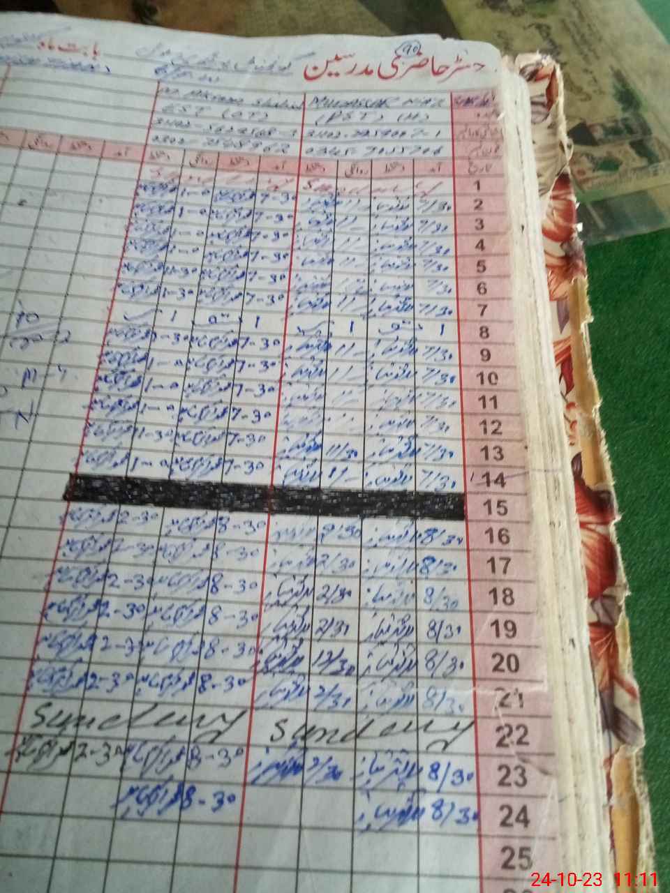 | CNIC | Full Name | Designation | R/C | Absence During Last Calender Month |