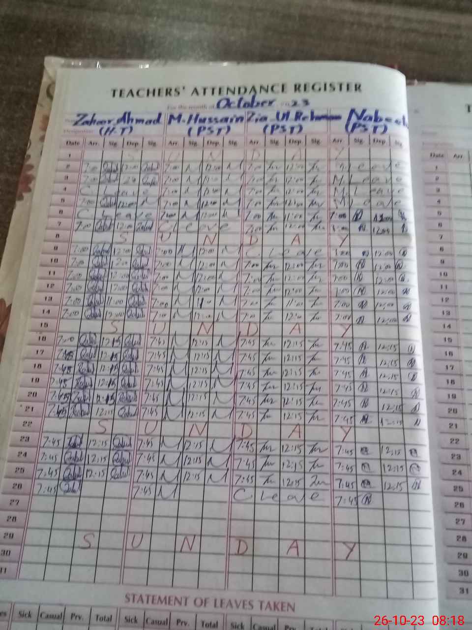 | Name: Za**** Ah**** Designation: (School Headmaster's/Headmistress's) PST Phone/Cell Number: 03**** |
