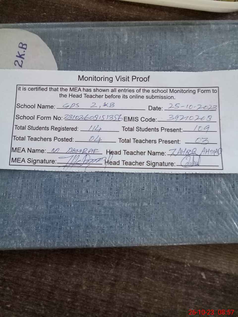 | EMIS Code: 39210208 | Name of School: GPS 2 KB PO PAKPATTAN | |||