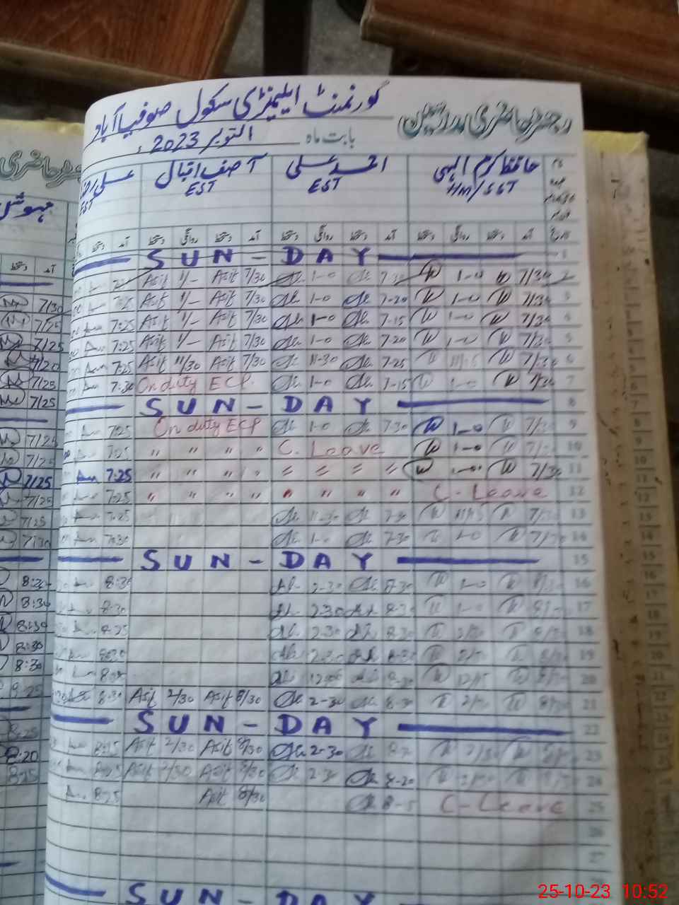 | Leave | Duty | Absent | Maternity | Medical | Ex- Pak |