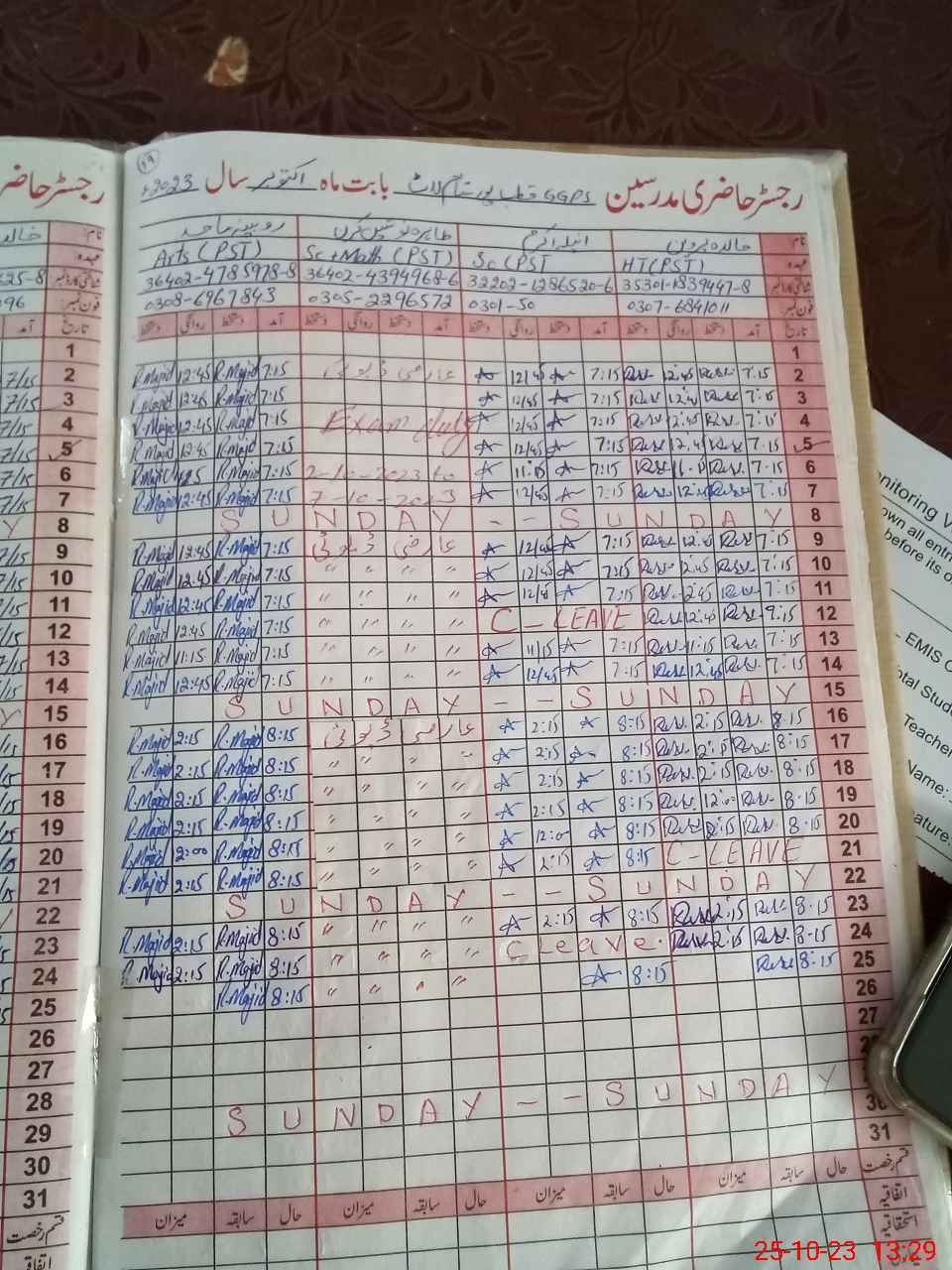 | Name: An**** Ak**** Designation: (School Headmaster's/Headmistress's) PST Phone/Cell Number: 03**** |