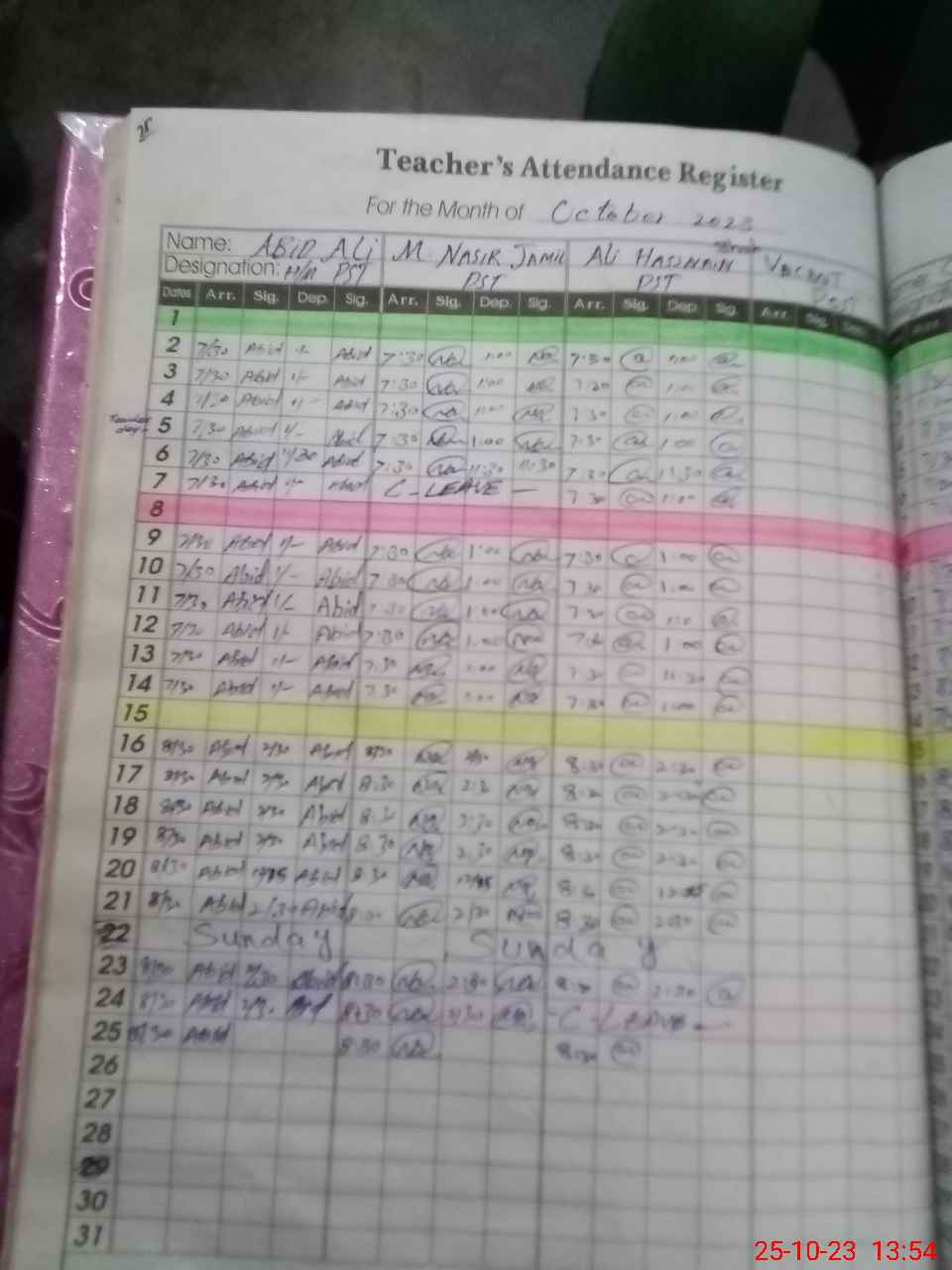 | CNIC | Full Name | Designation | R/C | Absence During Last Calender Month |