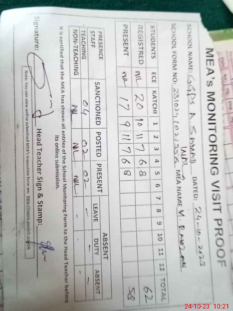 | EMIS Code: 36410433 | Name of School: GGPS ABDUL SAMAD WALA, SARAI SIDHU | |||