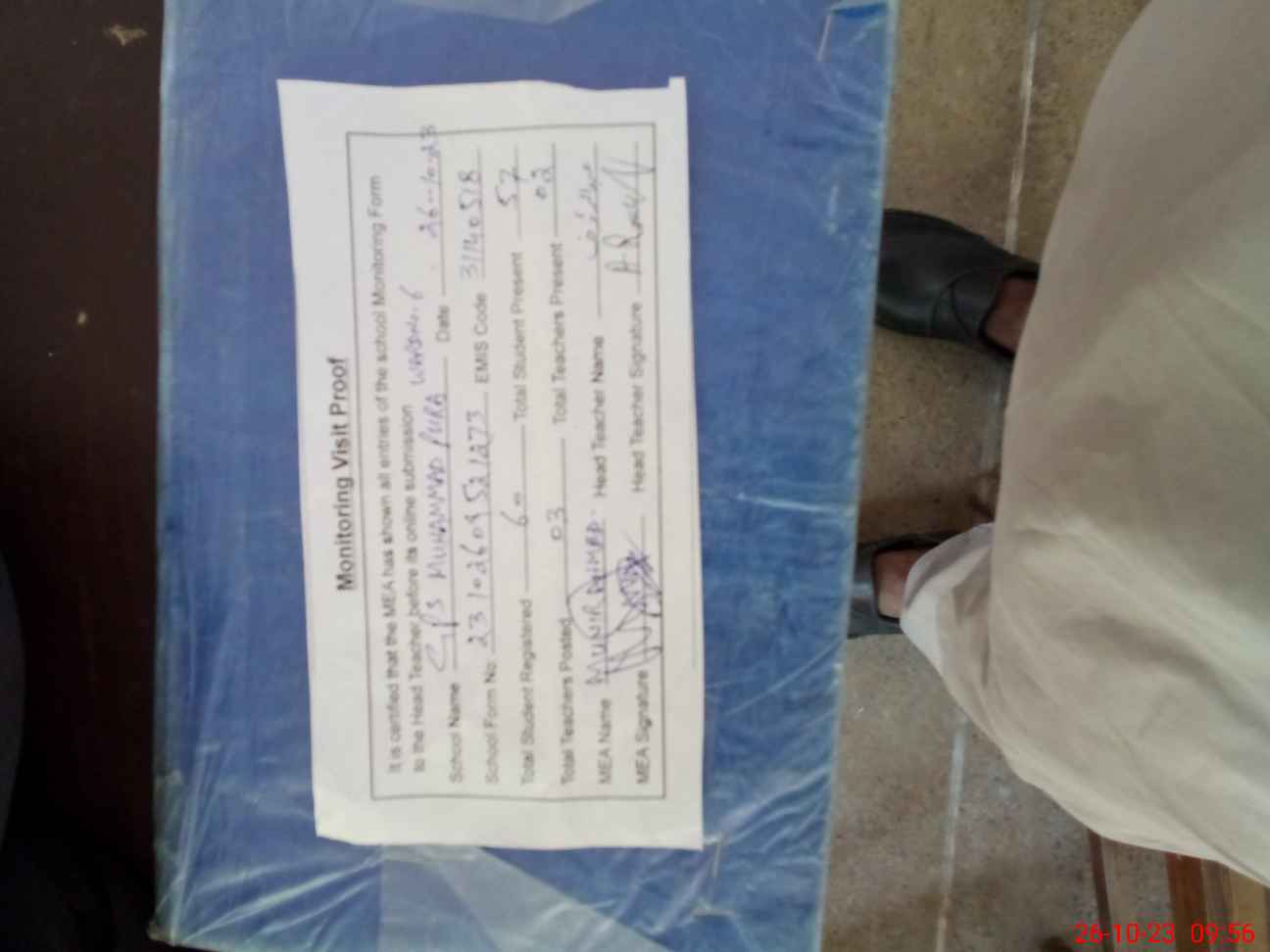 | Attendance Register | Head Teacher | MEA with School | Visit Proof |