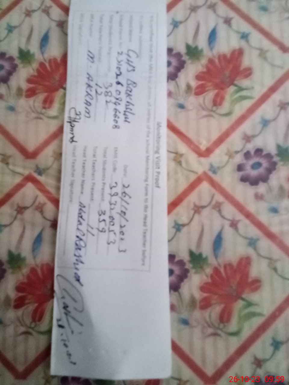| Attendance Register | Head Teacher | MEA with School | Visit Proof |