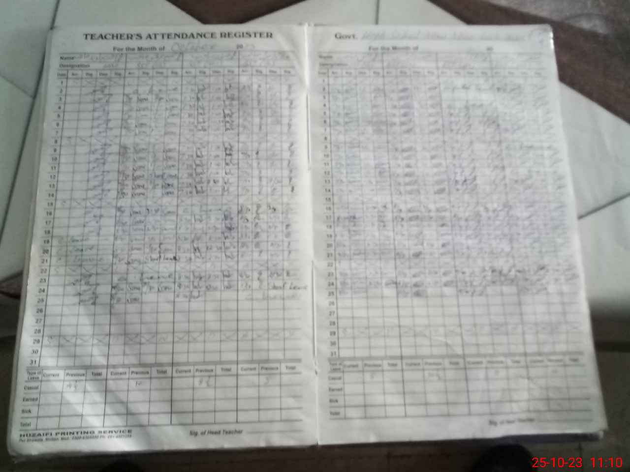 | CNIC | Full Name | Designation | R/C | Absence During Last Calender Month |
