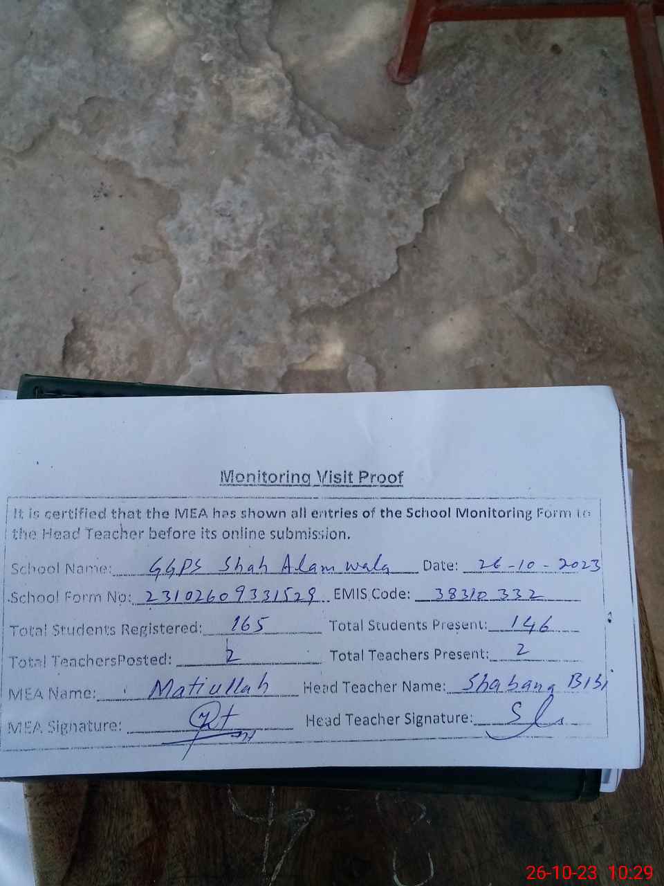 | EMIS Code: 38310332 | Name of School: GGPS SHAH ALAM WALA | |||