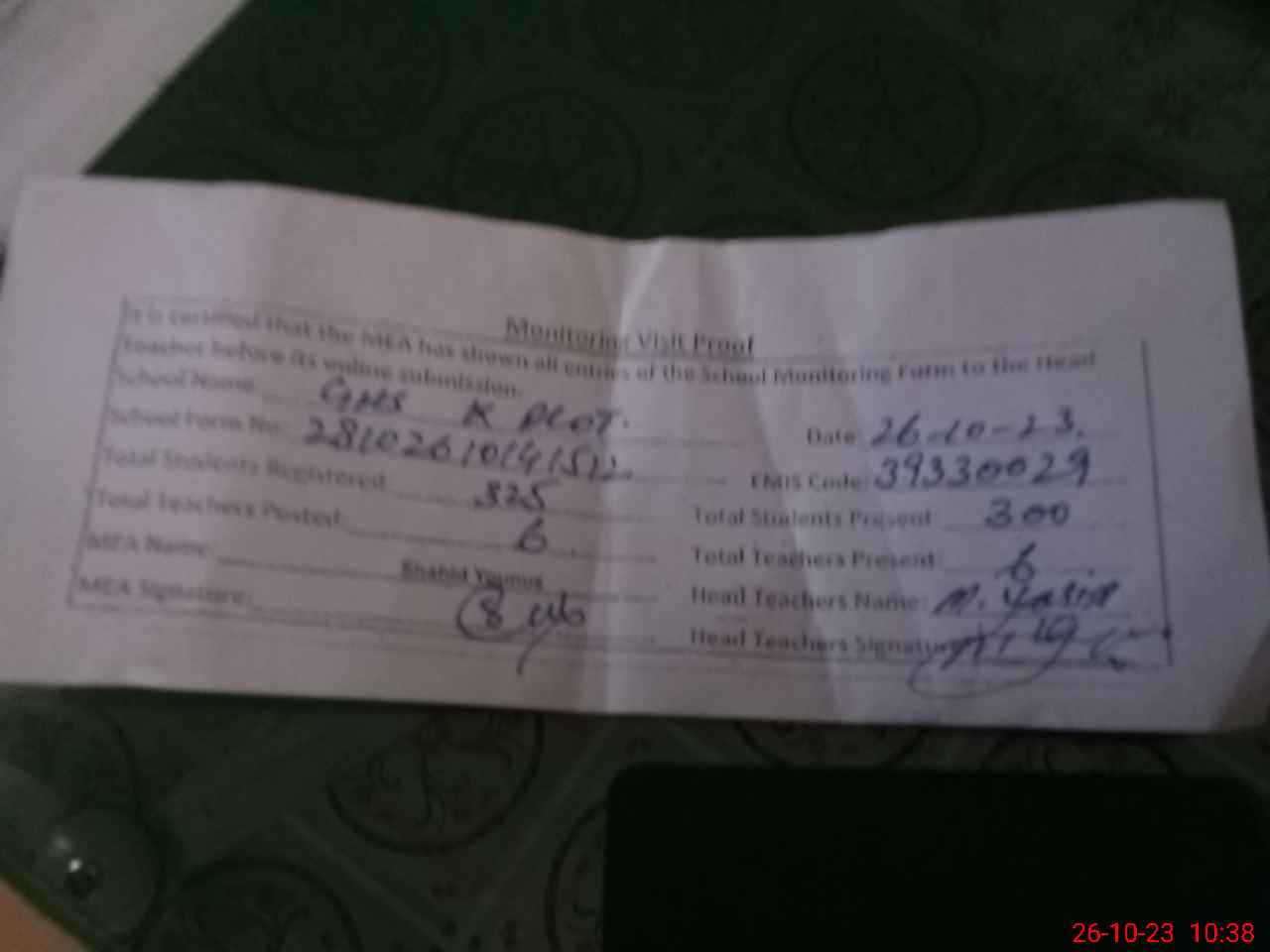 | EMIS Code: 39330029 | Name of School: GHS K PLOT | |||