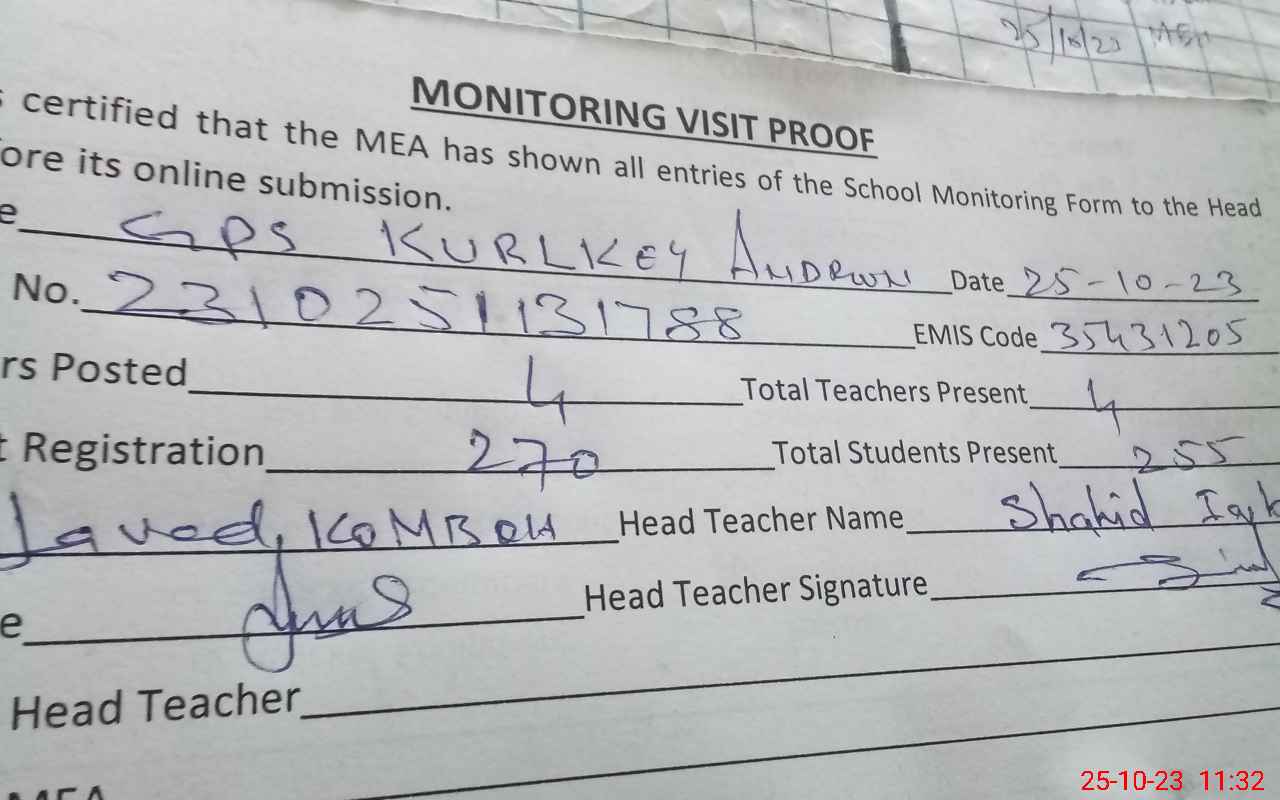 | EMIS Code: 35431205 | Name of School: GPS KURLKEY ANDROON | |||