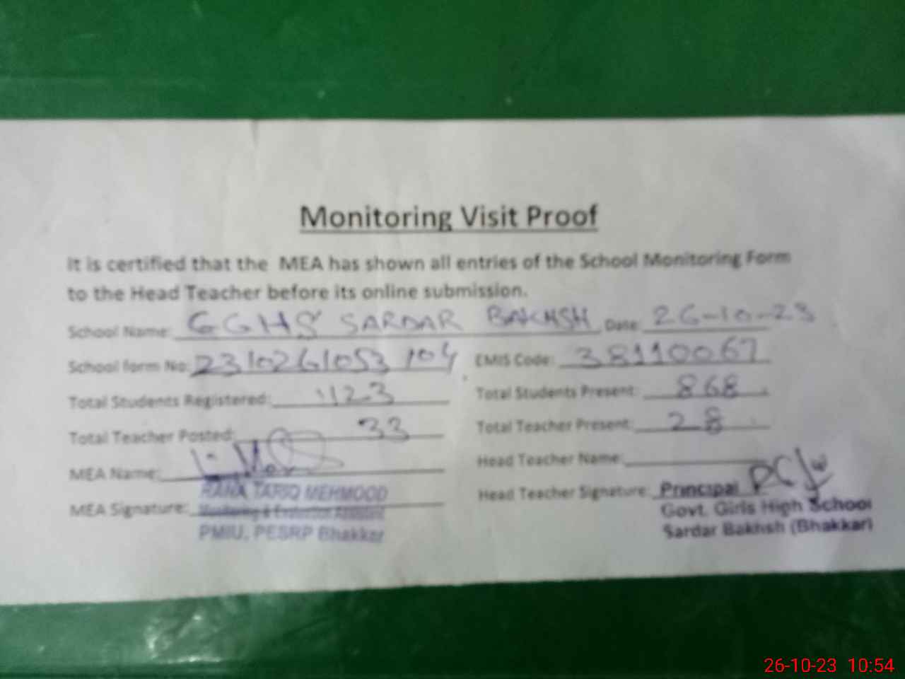 | EMIS Code: 38110067 | Name of School: GGHS SARDAR BAKHSH | |||