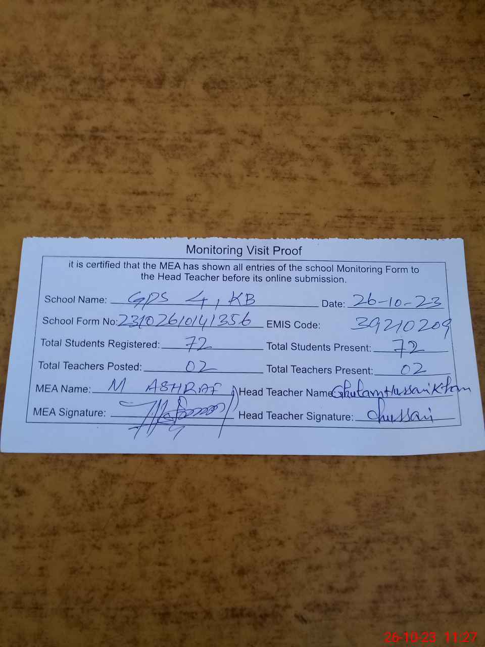 | EMIS Code: 39210209 | Name of School: GPS 4 KB PO PAKPATTAN | |||