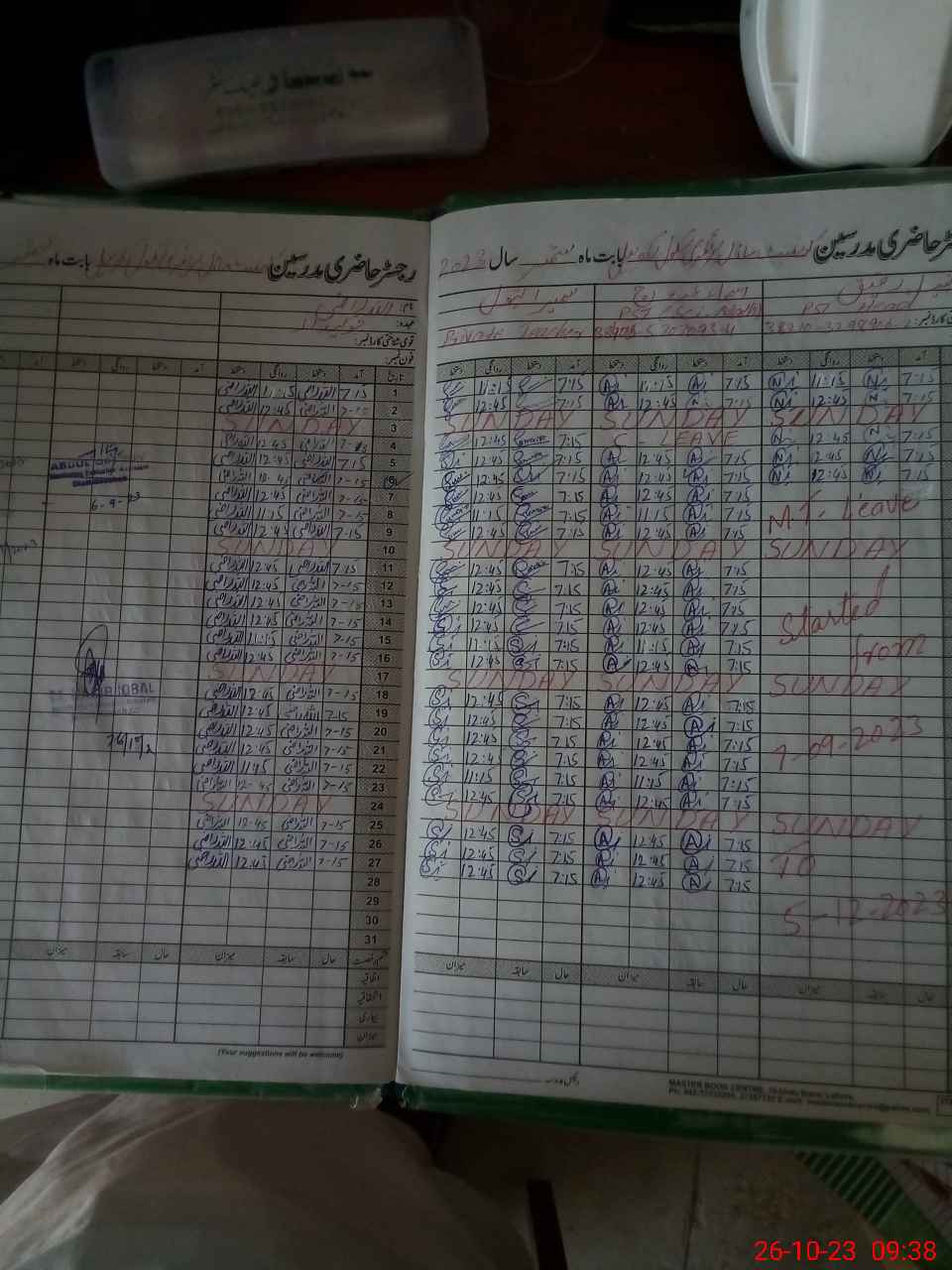 | Leave | Duty | Absent | Maternity | Medical | Ex- Pak |