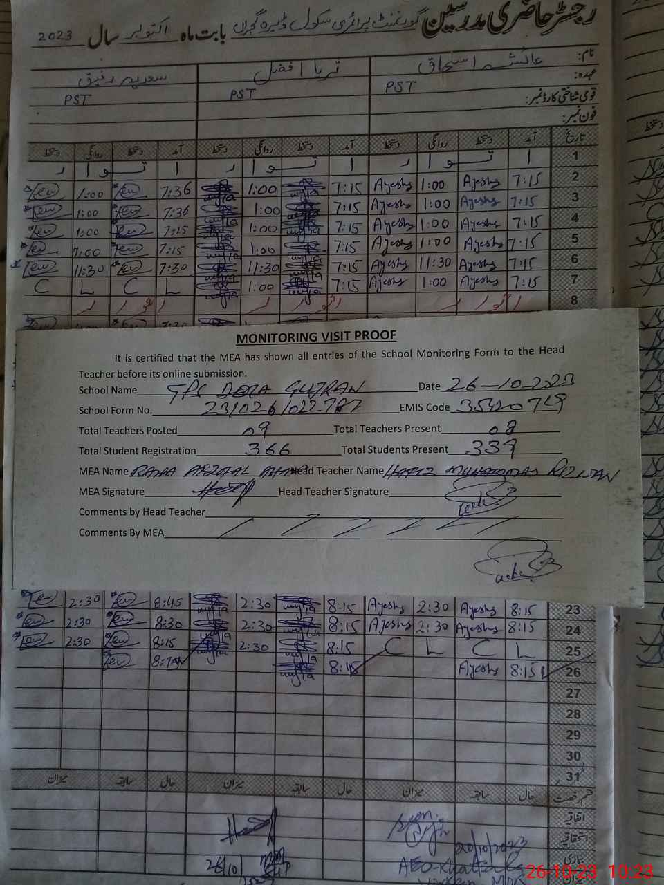 | EMIS Code: 35420719 | Name of School: GPS DERA GUJRAN | |||