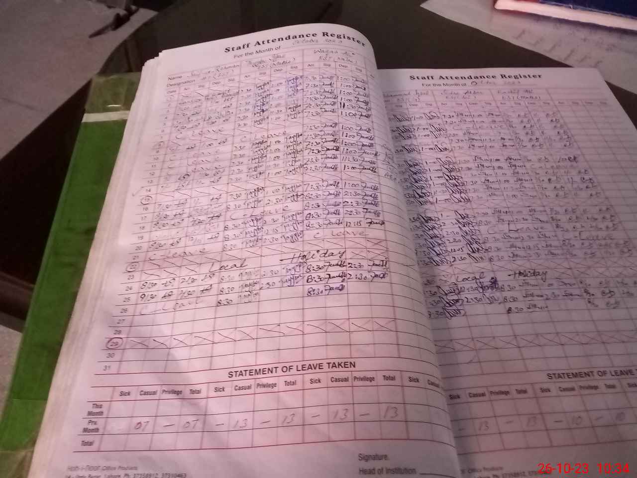 | Leave | Duty | Absent | Maternity | Medical | Ex- Pak |