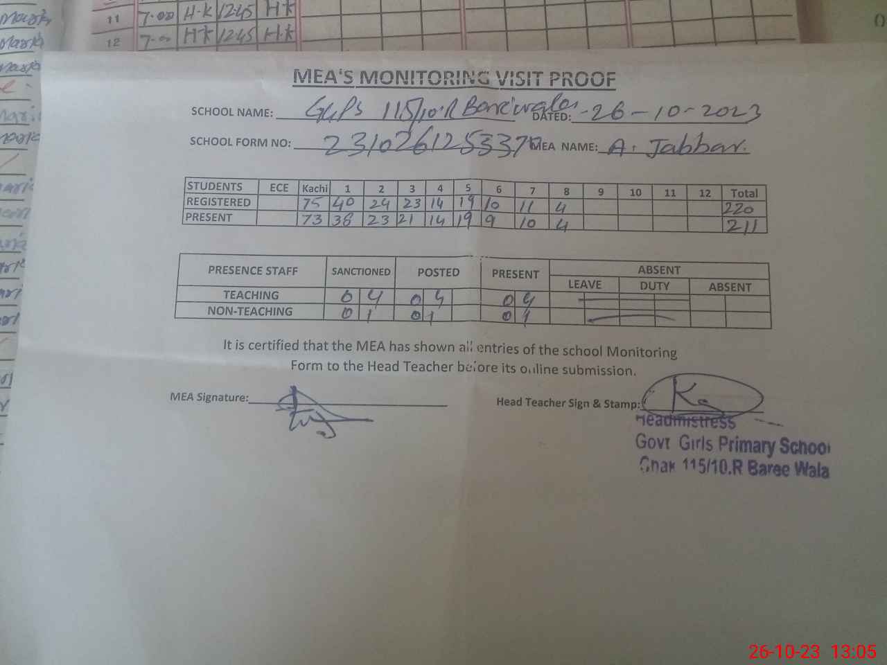 | EMIS Code: 36440518 | Name of School: GGPS 115/10-R BARI WALA, JAHANIAN | |||